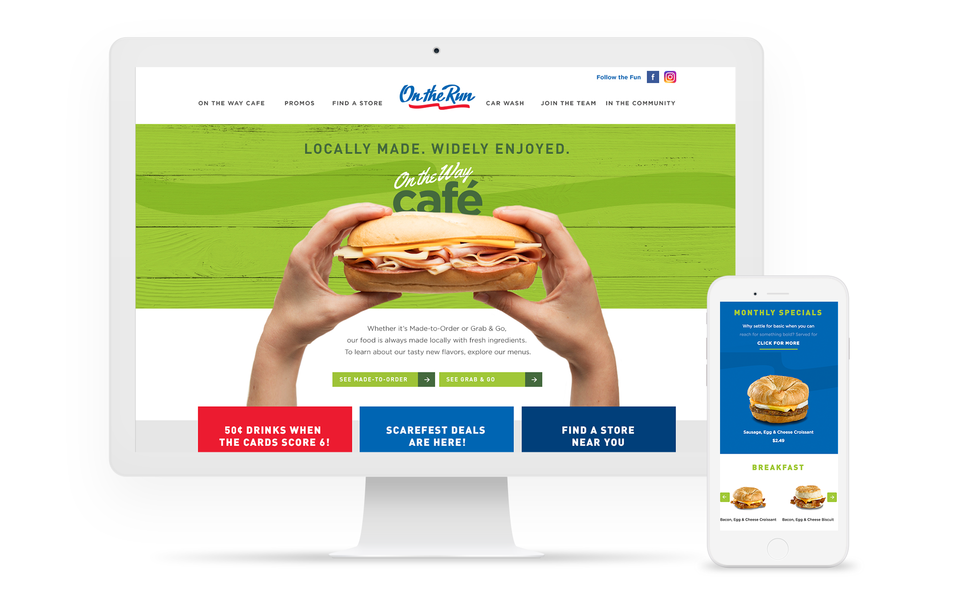Beyond this campaign, I supported On the Run across in-store signage, website design, out-of-home advertising, market branding and refresh work, menu design, food photography, and organic social media.